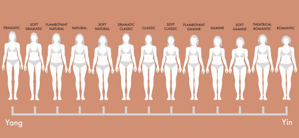 The Kibbe Body System is composed of 13 unique styles based on 5 main families: Dramatic, Natural, Classic, Gamine, and Romantic.