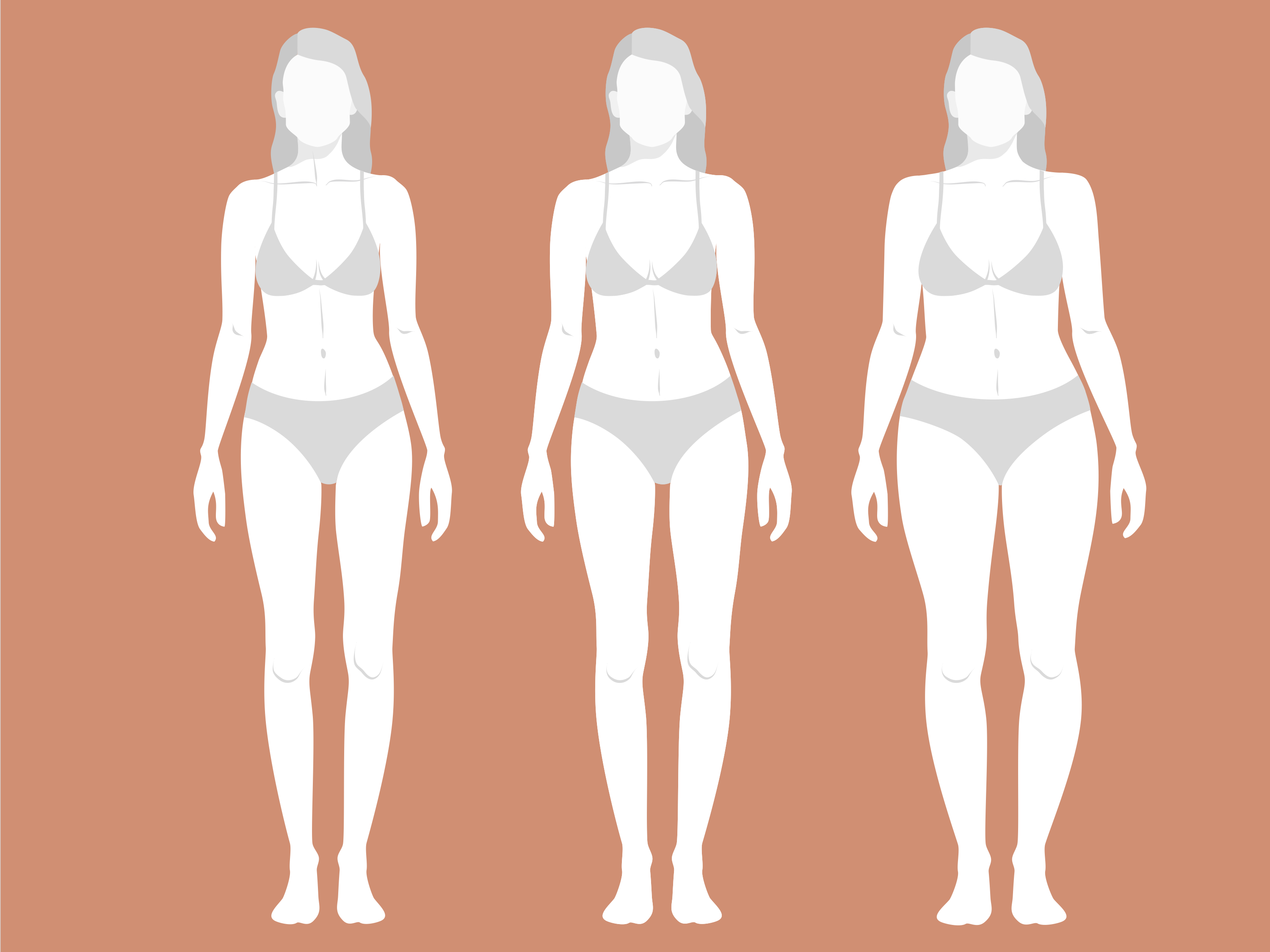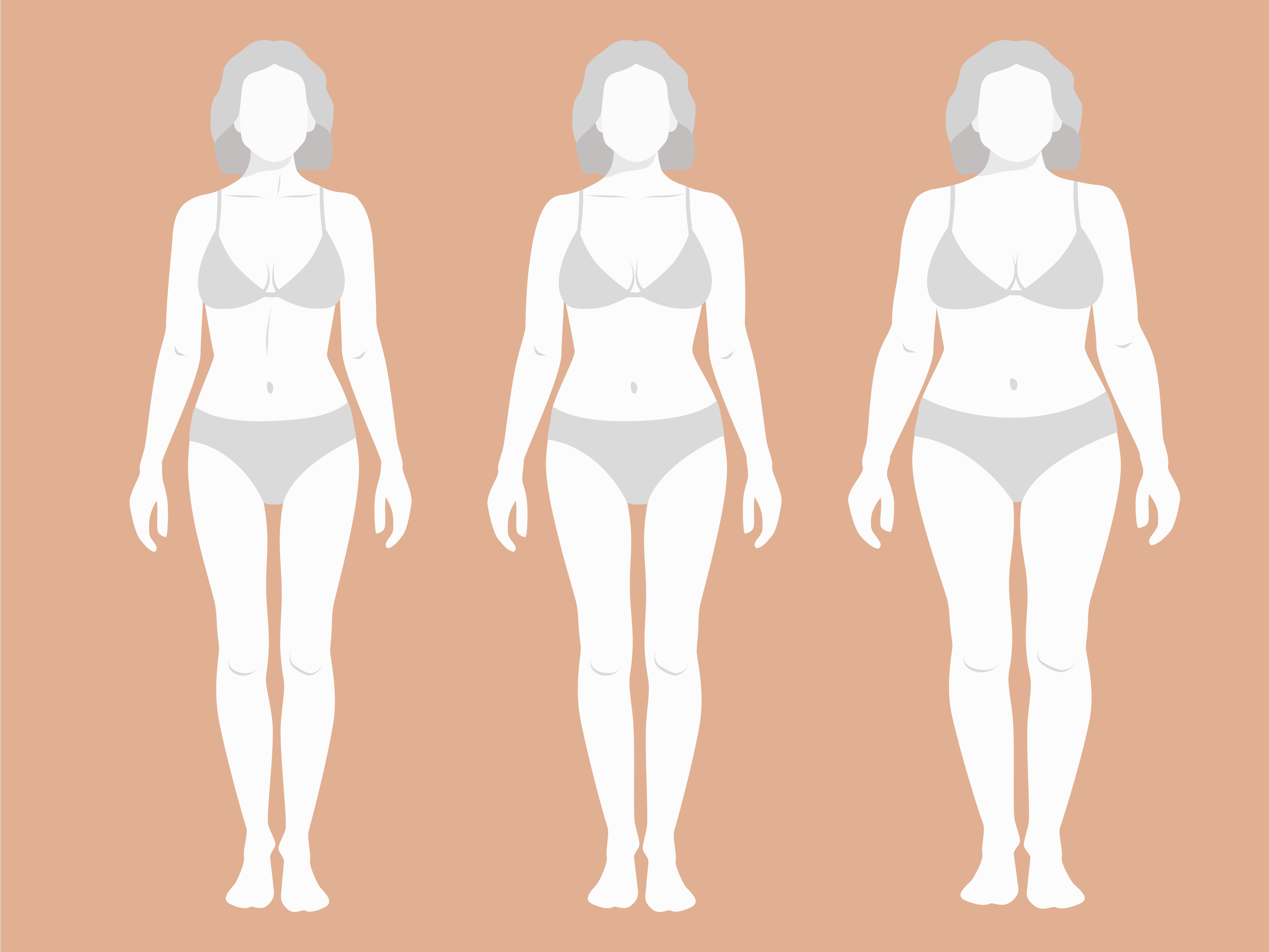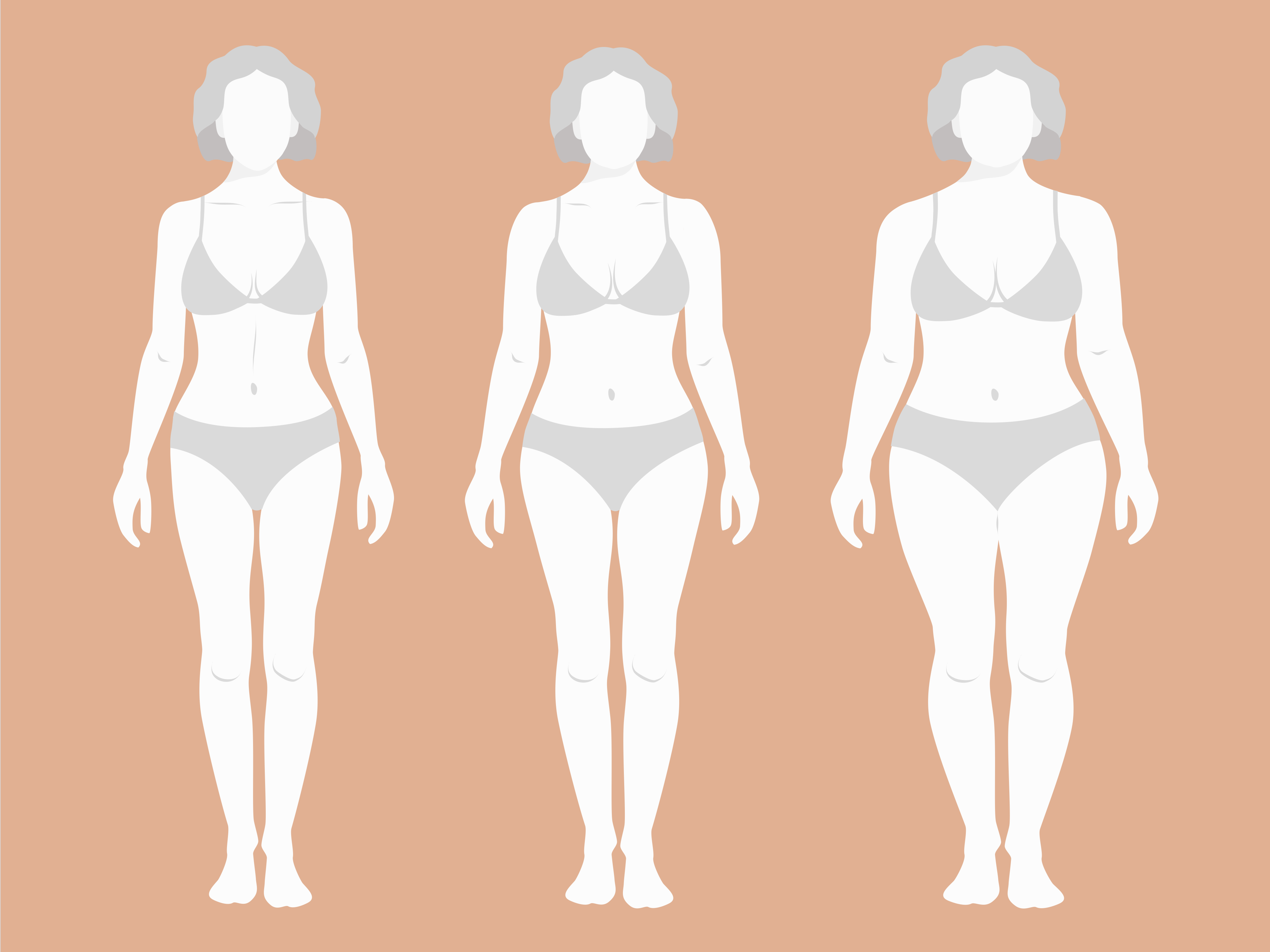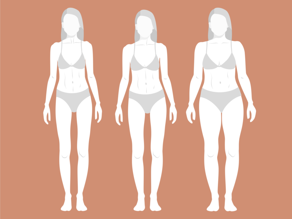 The body becomes very soft. Their waist loses its definition and tends to form cellulite very fast on their fleshier areas. Upper arms, tights, and hips collect the weight.