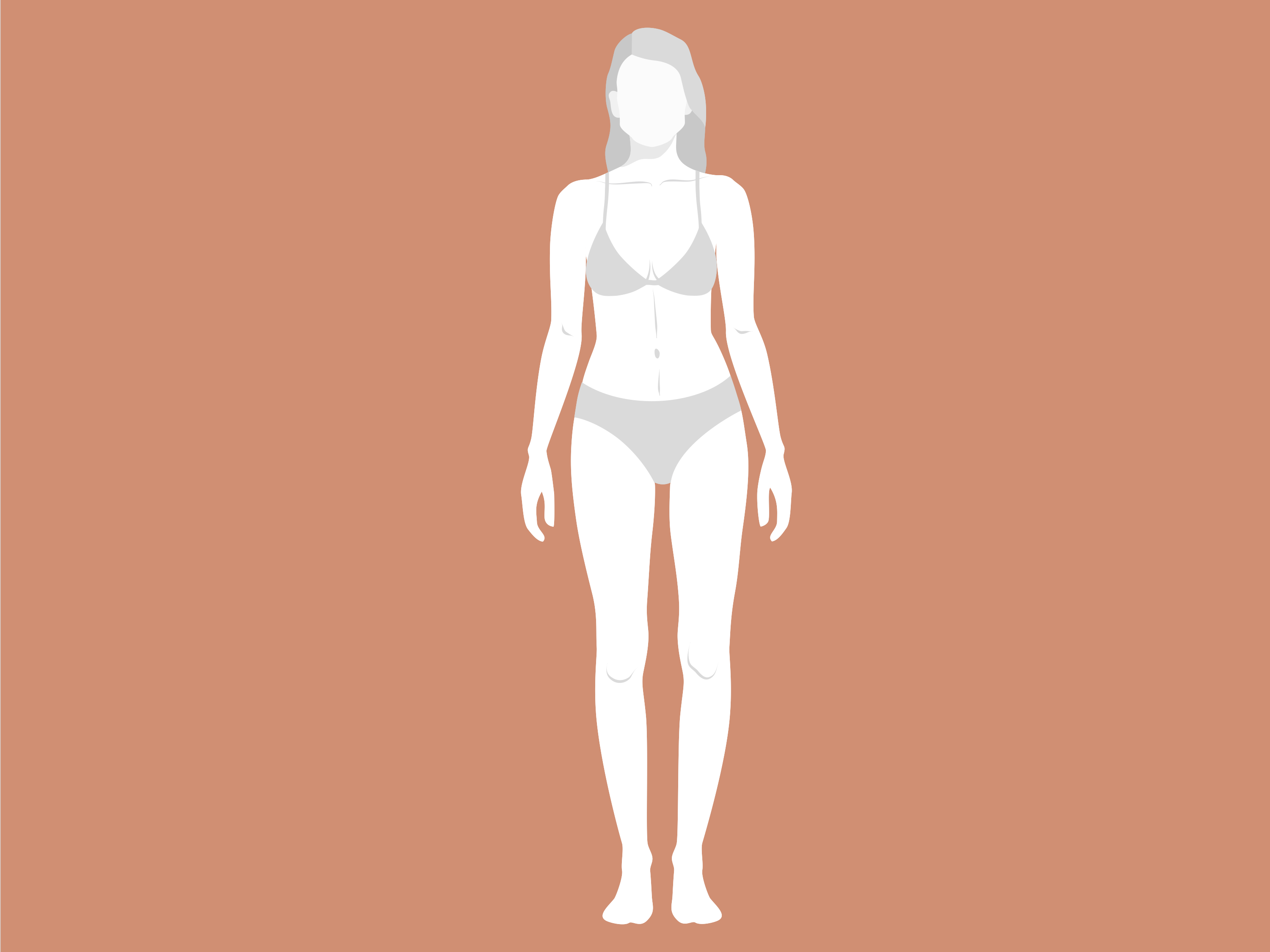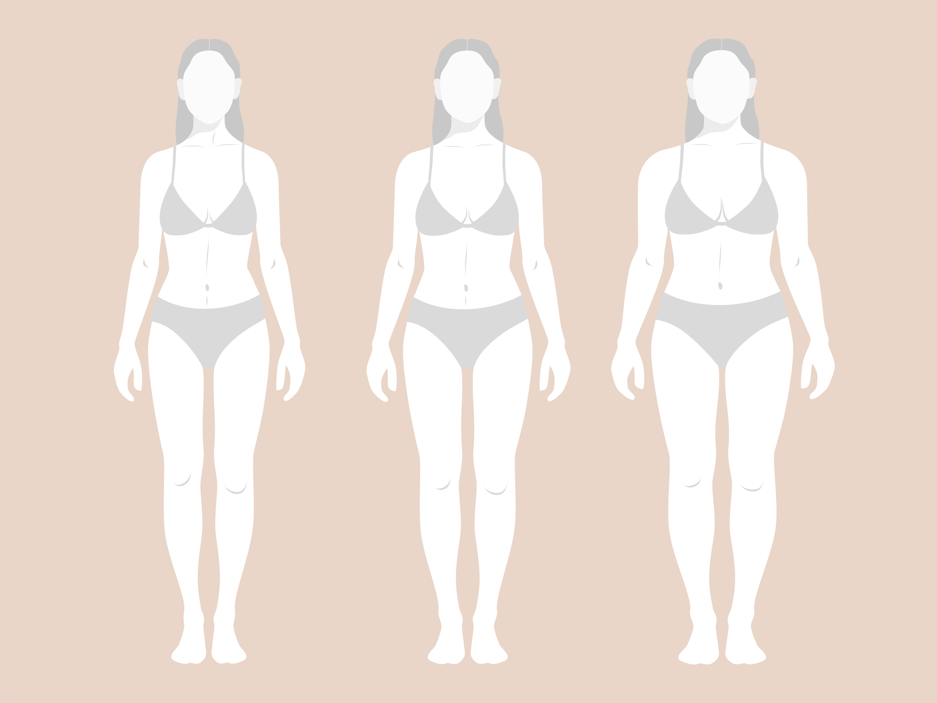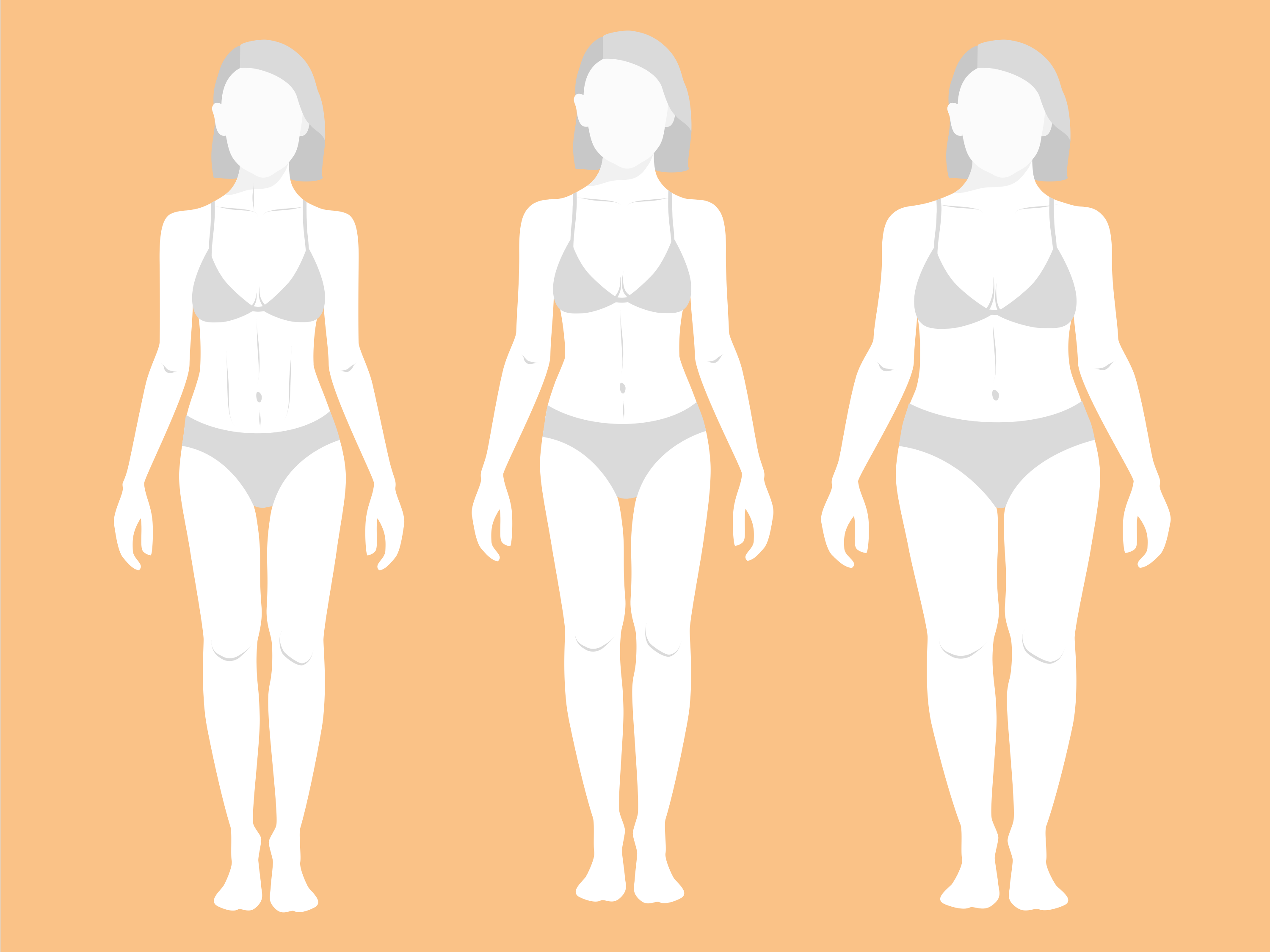 The body becomes very soft. Their waist loses its definition and tends to form cellulite very fast on their fleshier areas. Upper arms, tights, and hips collect the weight.