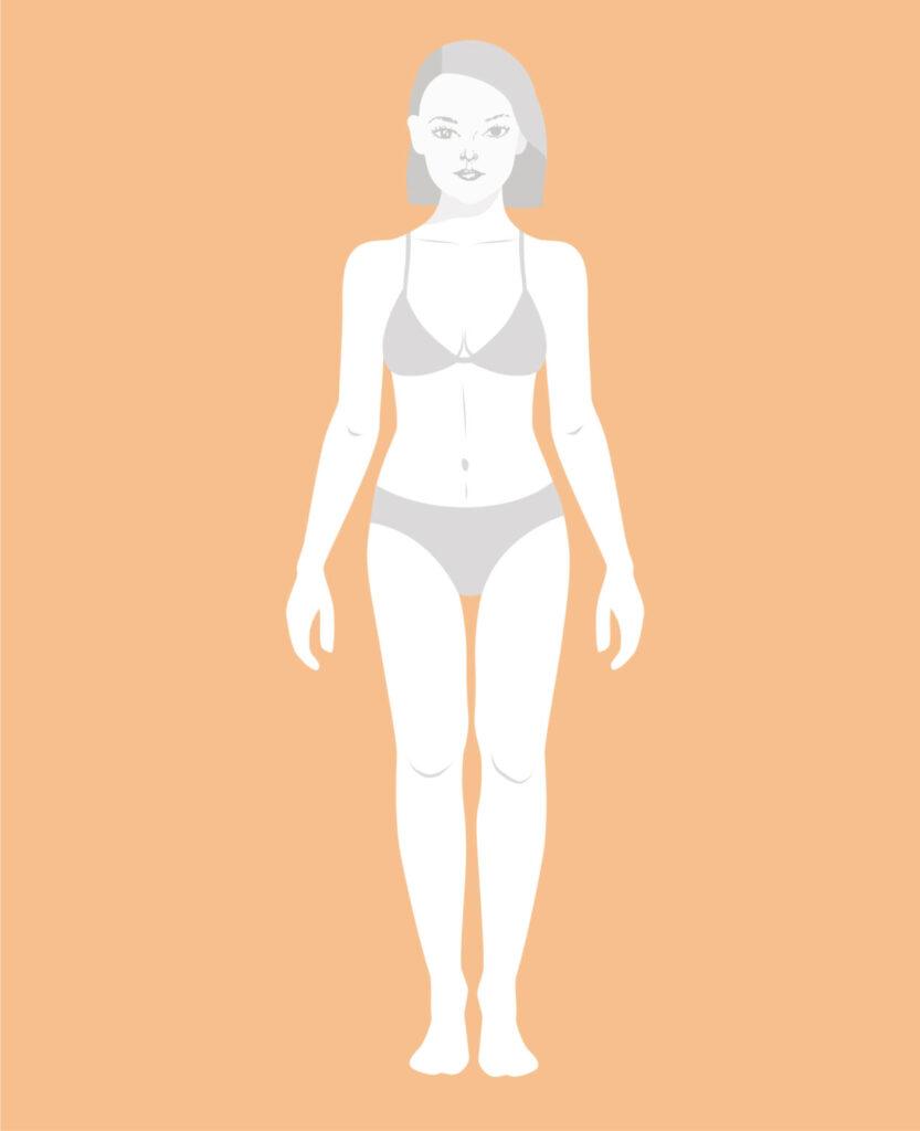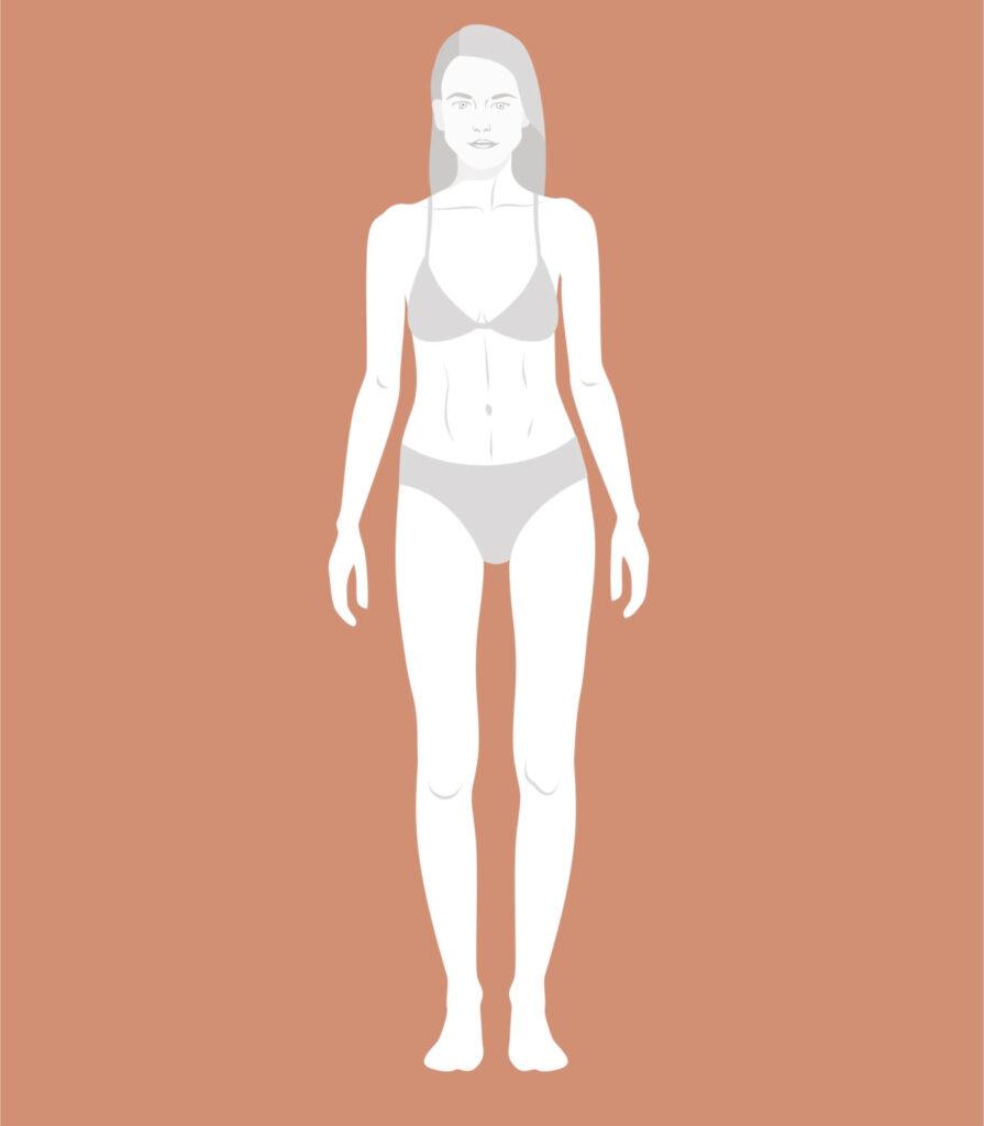 - Can have a flat-ish bust line with a straight waistline and hips.