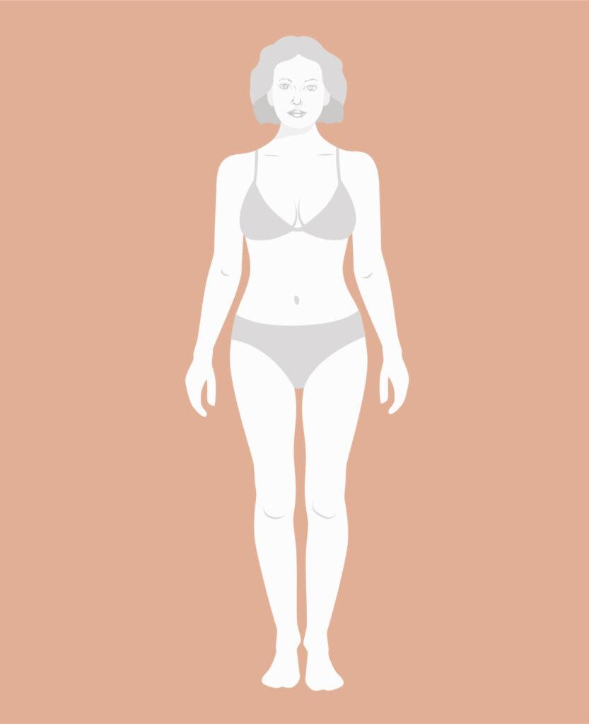 - Flat-ish bust line with a straight waistline and hips.