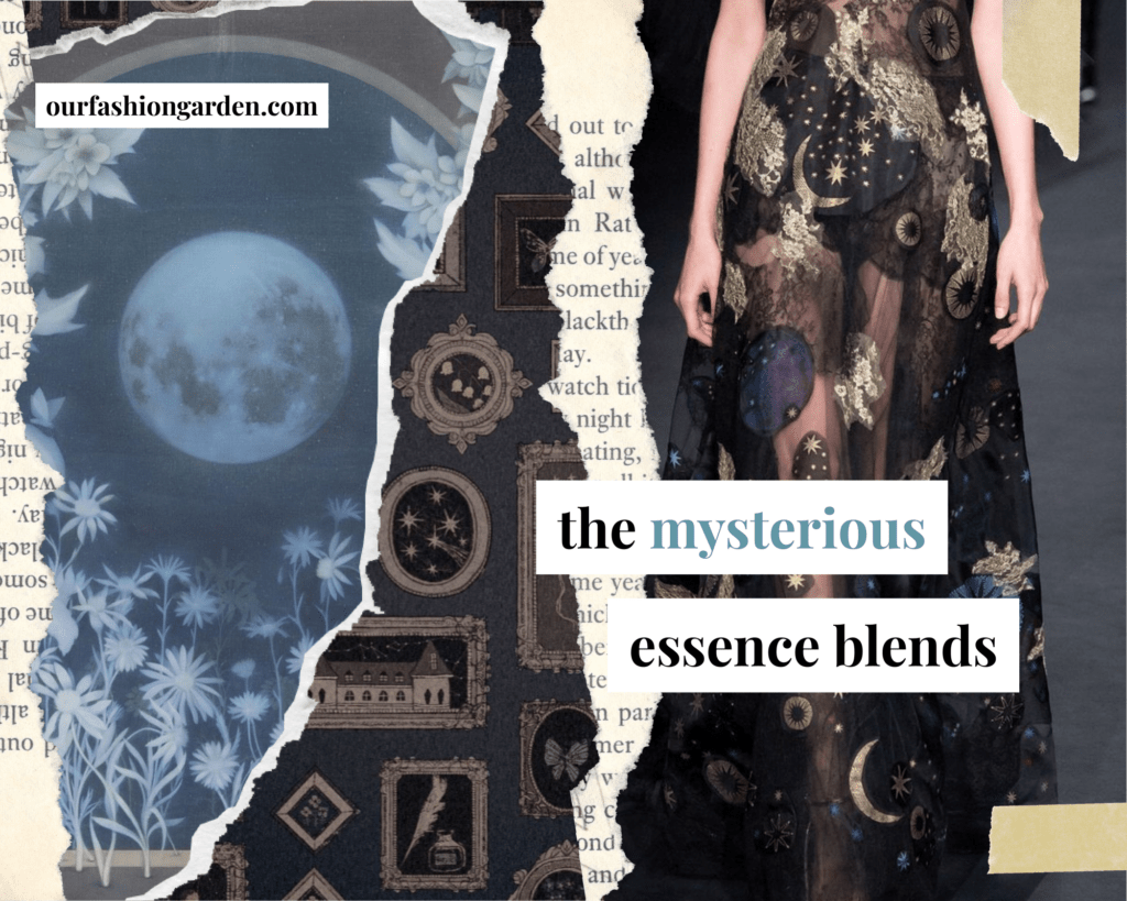 People with essence blends within the “Mysterious” group are often perceived as “old souls”; they have a charisma that draws others in almost hypnotically. They may seem distant or difficult to decipher, but their presence is deeply inspiring. They are individuals who walk between reality and fantasy, seeking a style that acts as a bridge between the two, to reflect their sensitivity.