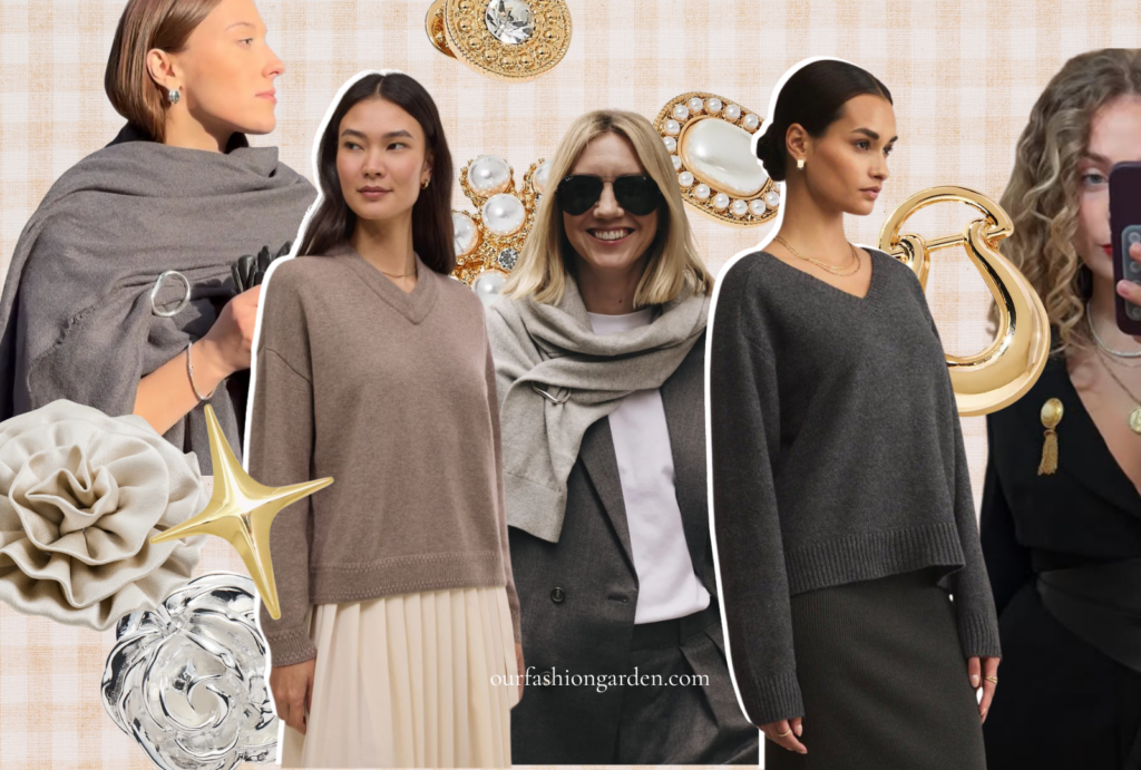 Opt for fine or medium-weight knits in neutral or muted tones. Pair them with tailored trousers or skirts, or with elegant shirts. Avoid oversized or overly baggy cuts, as structure is what keeps this trend true to the classic essence.