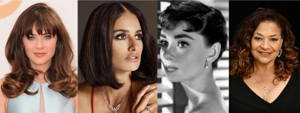 -Tina Turner, Audrey Hepburn, Coco Chanel, Lizza Minnelli, Zoey Deschanel, Debbie Allen, Penelope Cruz, Shari Balafonte, Kelly Osbourne, Jennifer Love Hewitt, Twiggy.-