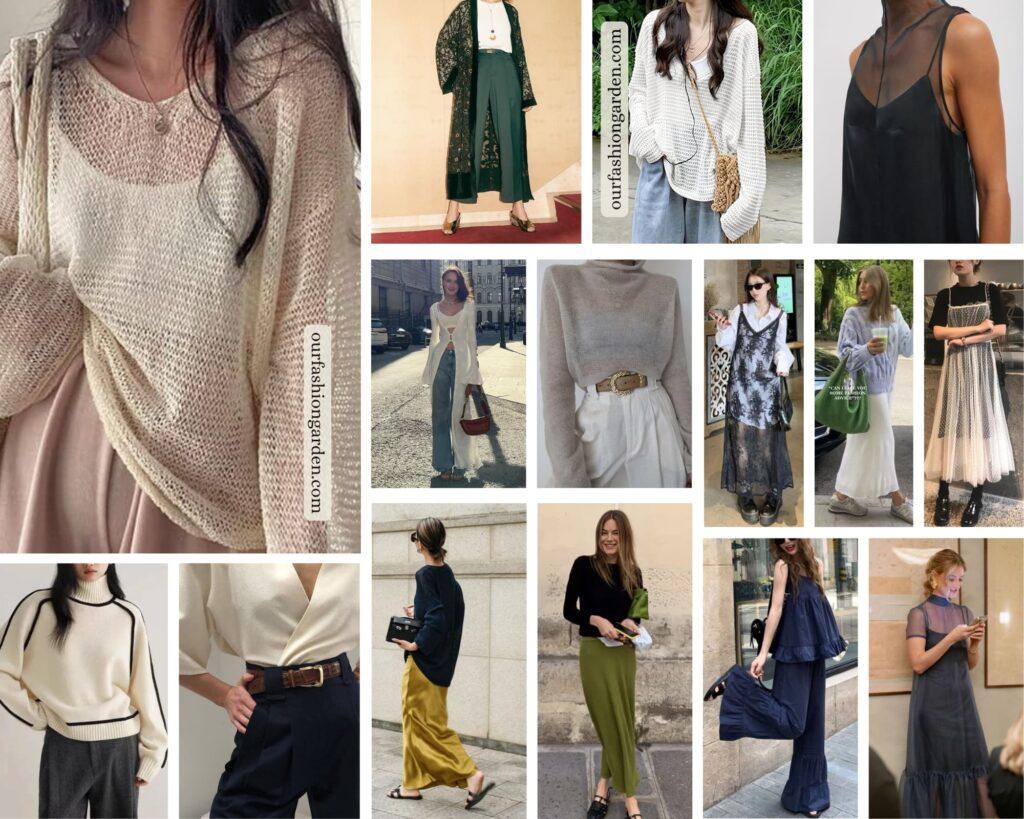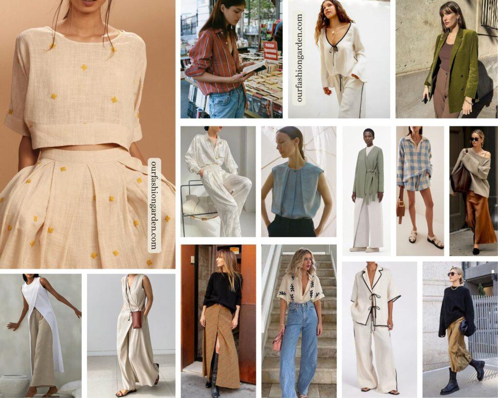 When the Natural essence is the main essence, the look will be relaxed and carefree, prioritising comfort. The garments will have a wide, flowing silhouette, made with natural fabrics and soft textures with an effortless vibe. However, the Dramatic essence will add structured or sharp details to prevent the style from looking too casual, while the Angelic essence will bring ethereal elements, such as light layers or delicate details.