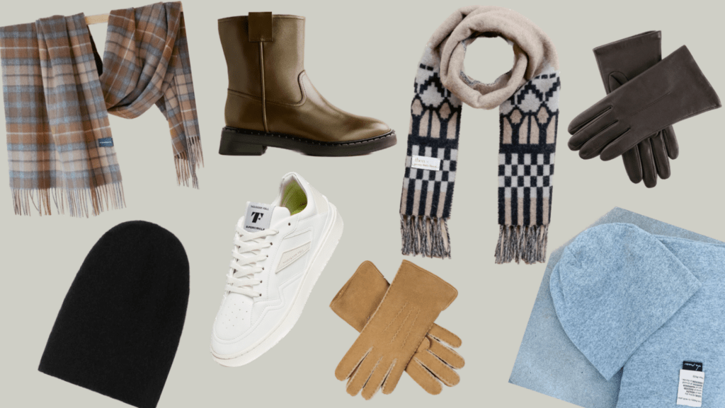 For gloves, anything from leather to cashmere. Gloves must look like they were made just for you.